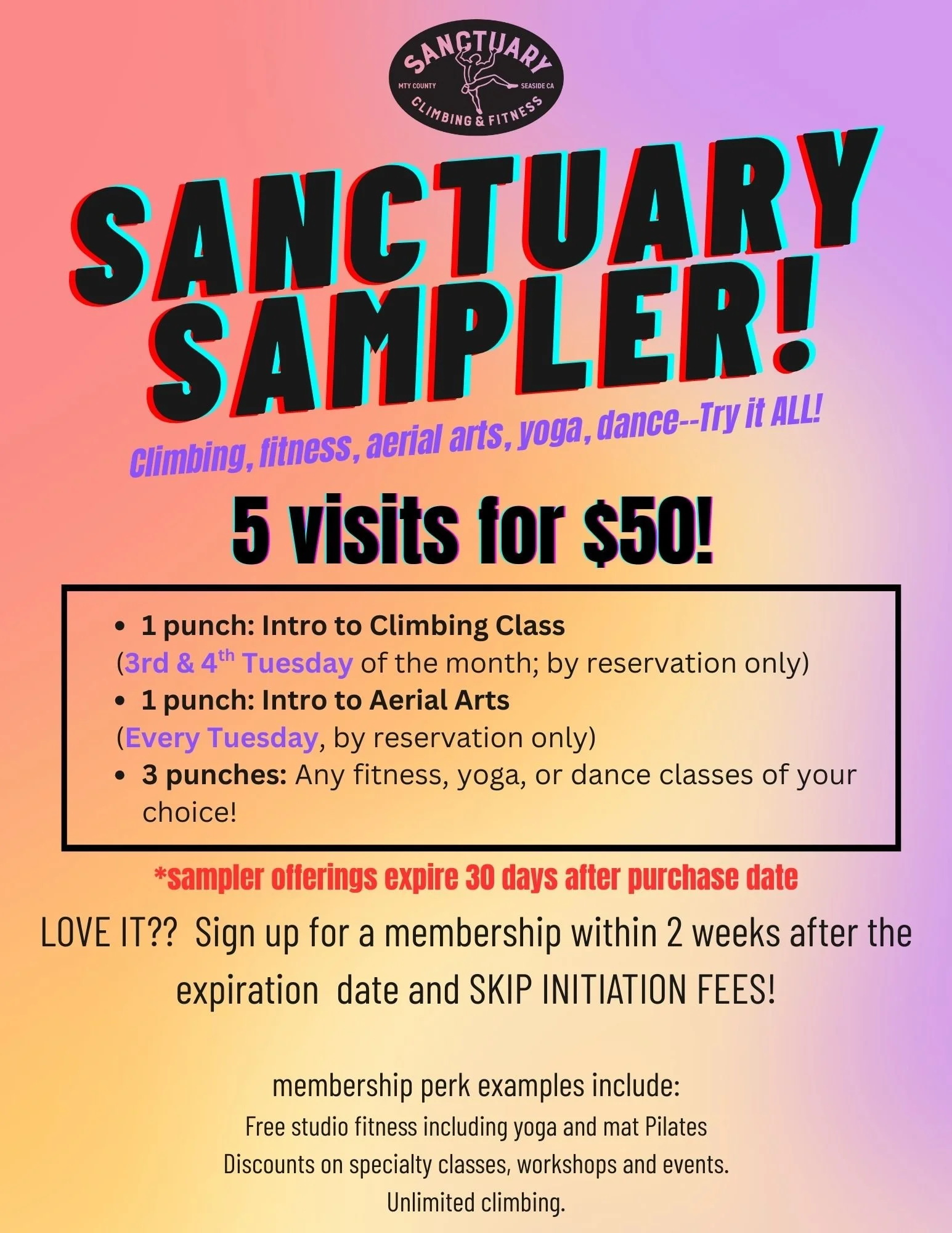 New to Sanctuary Climbing & Fitness and want to try it, get a taste for it before you buy it?!