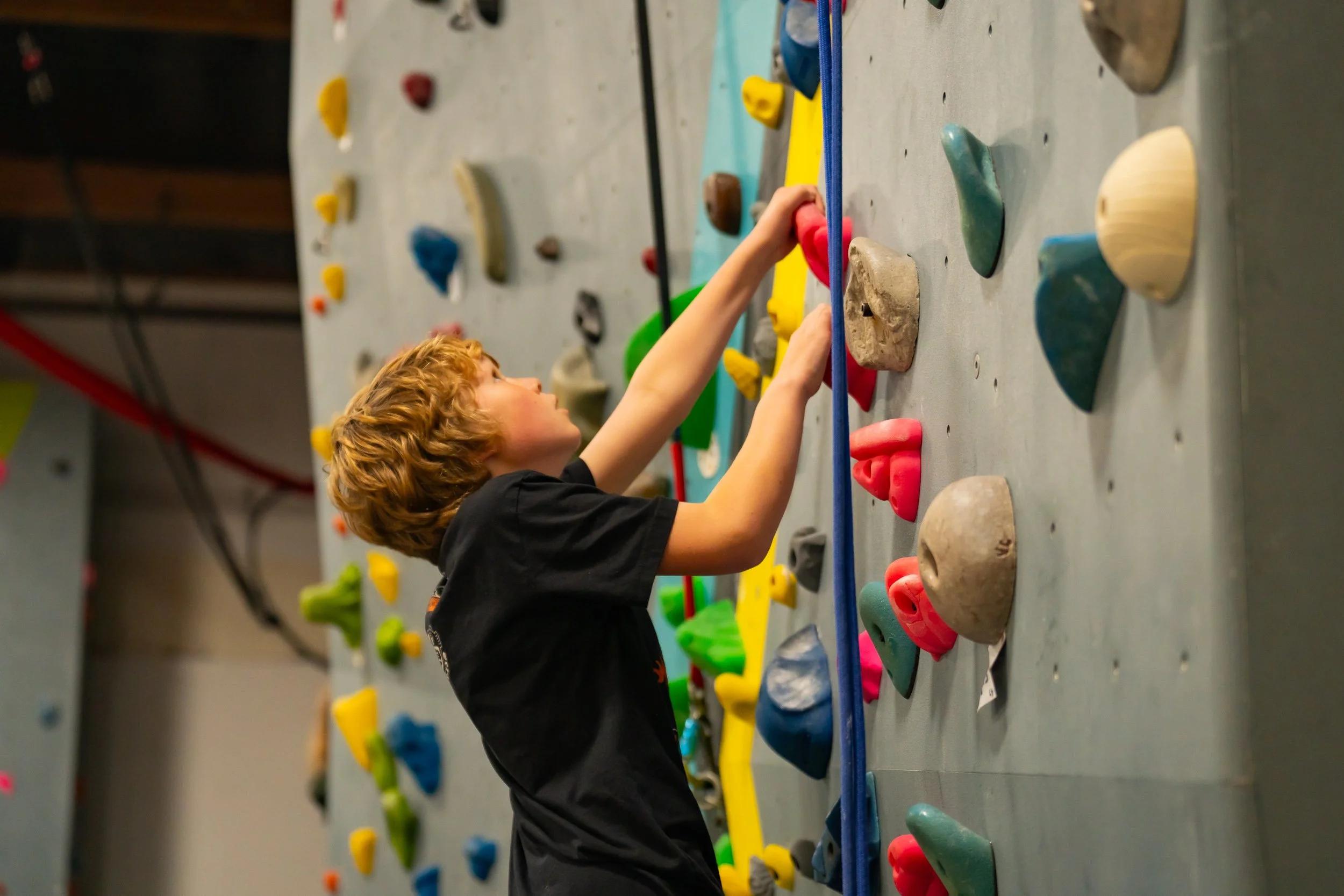 Sanctuary Summer Climbing Camps provide an engaging summer experience for children ages 7-11. Participants will engage in a supportive environment emphasizing gym etiquette and safety, helping kids become part of the Sanctuary Climbing & Fitness community. Our experienced instructors teach essential climbing techniques, improve footwork, and enhance problem-solving skills while ensuring safety. The curriculum includes fun conditioning and stretching exercises to keep climbers strong and safe. Each camp fosters a friendly atmosphere for children to build confidence and friendships while exploring the exciting world of climbing.